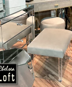 MGA6593-1 Taburete Khalifa Gris Perla Con Acrilico 61(L)X41(P)X44(A) Cm.