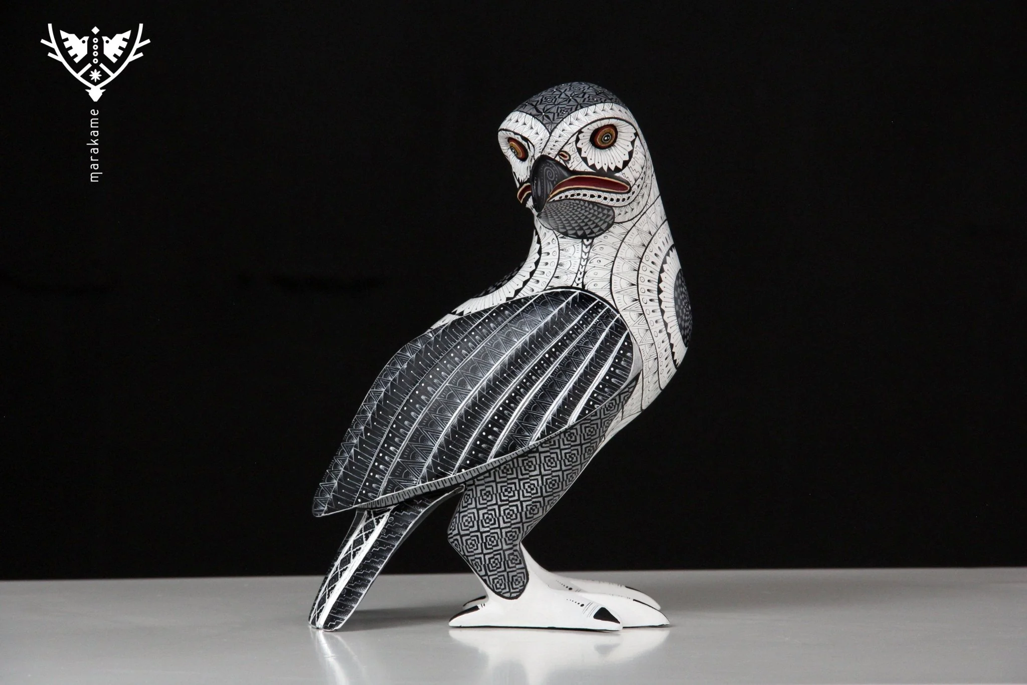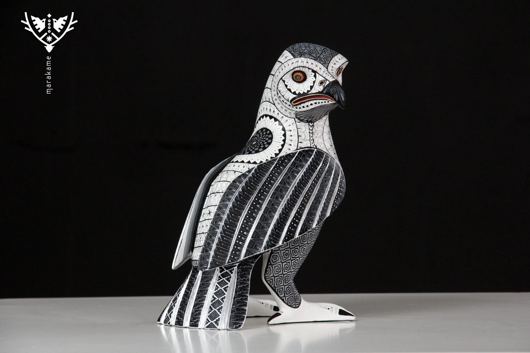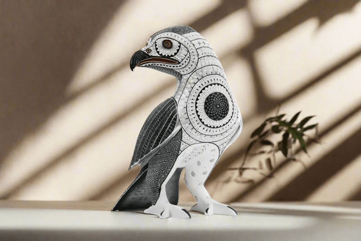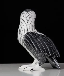 El círculo negro en el pecho del ave es un toque de simbolismo que agrega profundidad a esta obra de arte. La pose calma y serena del ave, viendo hacia un lado, invita al espectador a explorar la paz y la quietud del mundo natural. El Alebrije – Ave es perfecto para aquellos que buscan un objeto decorativo que les permita conectarse con la naturaleza y la espiritualidad.