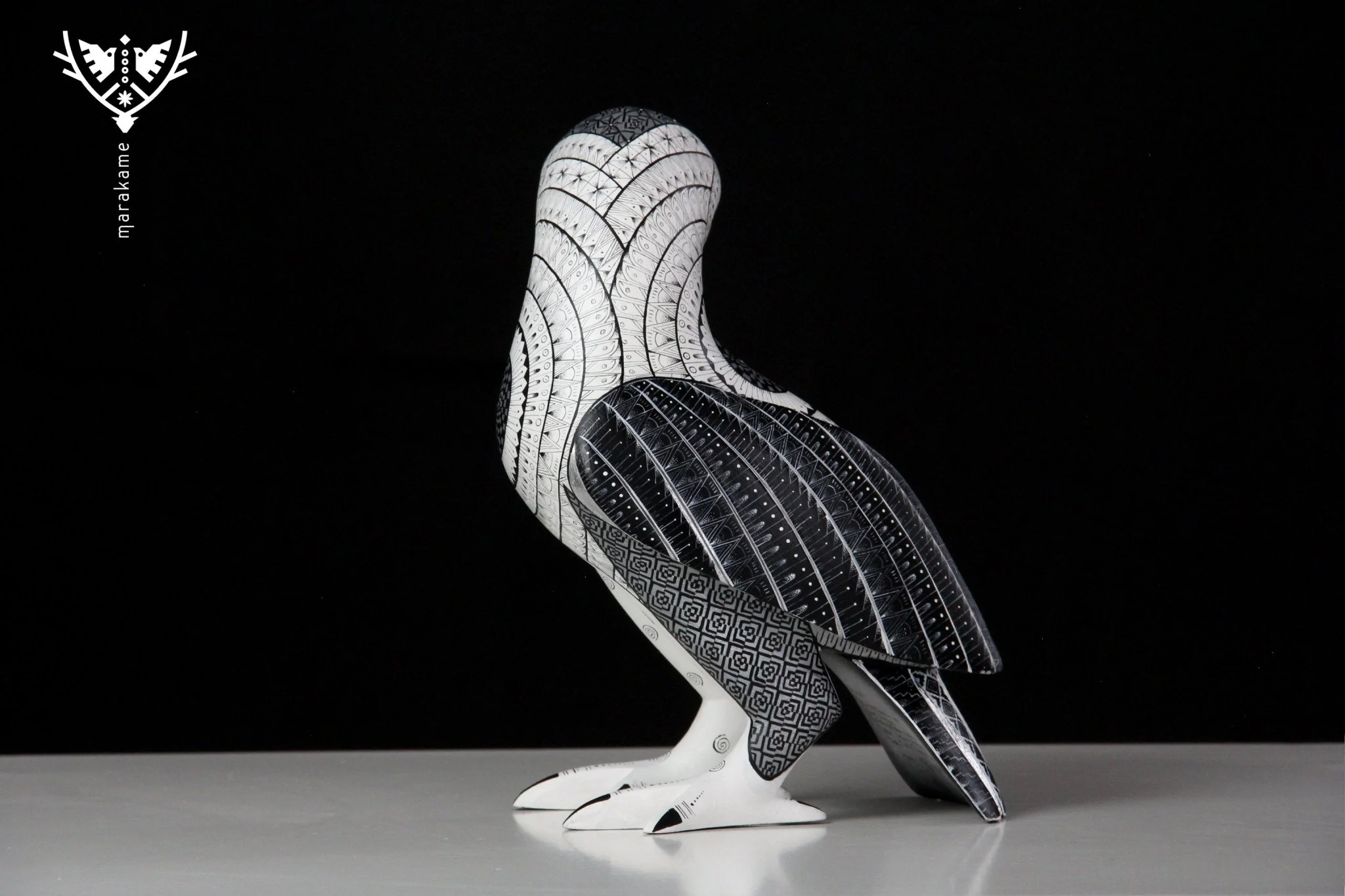 Una obra de arte que invita al silencio y la contemplación. Esta figura celestial se presenta con plumas blancas y cola y alas negras, creando un contraste interesante y dramático. Los detalles en pintura reflejan la riqueza y la complejidad del mundo animal.
