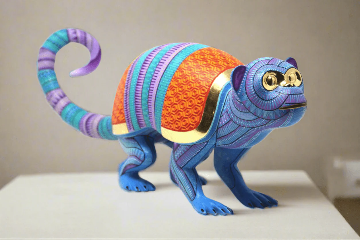 Este alebrije es un tributo a la rica cultura y mitología mexicana, con la figura mítica del Simio Armadillo como protagonista. Es perfecto para decorar tu hogar o regalarlo a alguien que aprecie el arte folclórico y la autenticidad. El Alebrije – Fusión Simio Armadillo es un objeto único que atrapará la atención de todos los que lo vean, invitándolos a explorar la magia y la imaginación del arte oaxaqueño.
