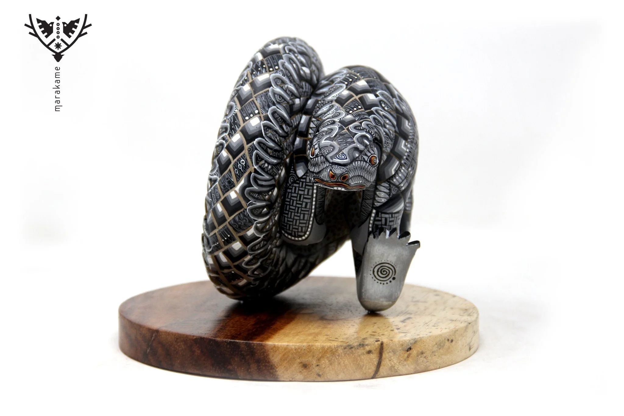 Esta selección especial de Alebrije oaxaqueño comisionada por Marakame a los mejores autores de alebrije moderno, es pintado a mano sobre talla en madera del árbol de copal (Bursera, spp), el cual crece a los alrededores de las comunidades de San Martín Tilcajete y San Antonio Arrazola, localidades de la región Zapoteca del Estado de Oaxaca, en el Sur de México.