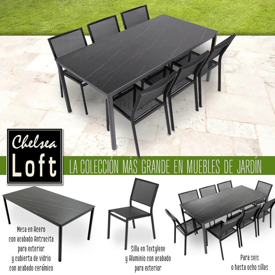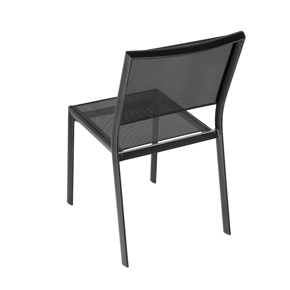 Silla Tenerife Negro estibable en Textylene y Aluminio con acabado para exterior 48cm(L) x 59cm(P) x 85cm(A)