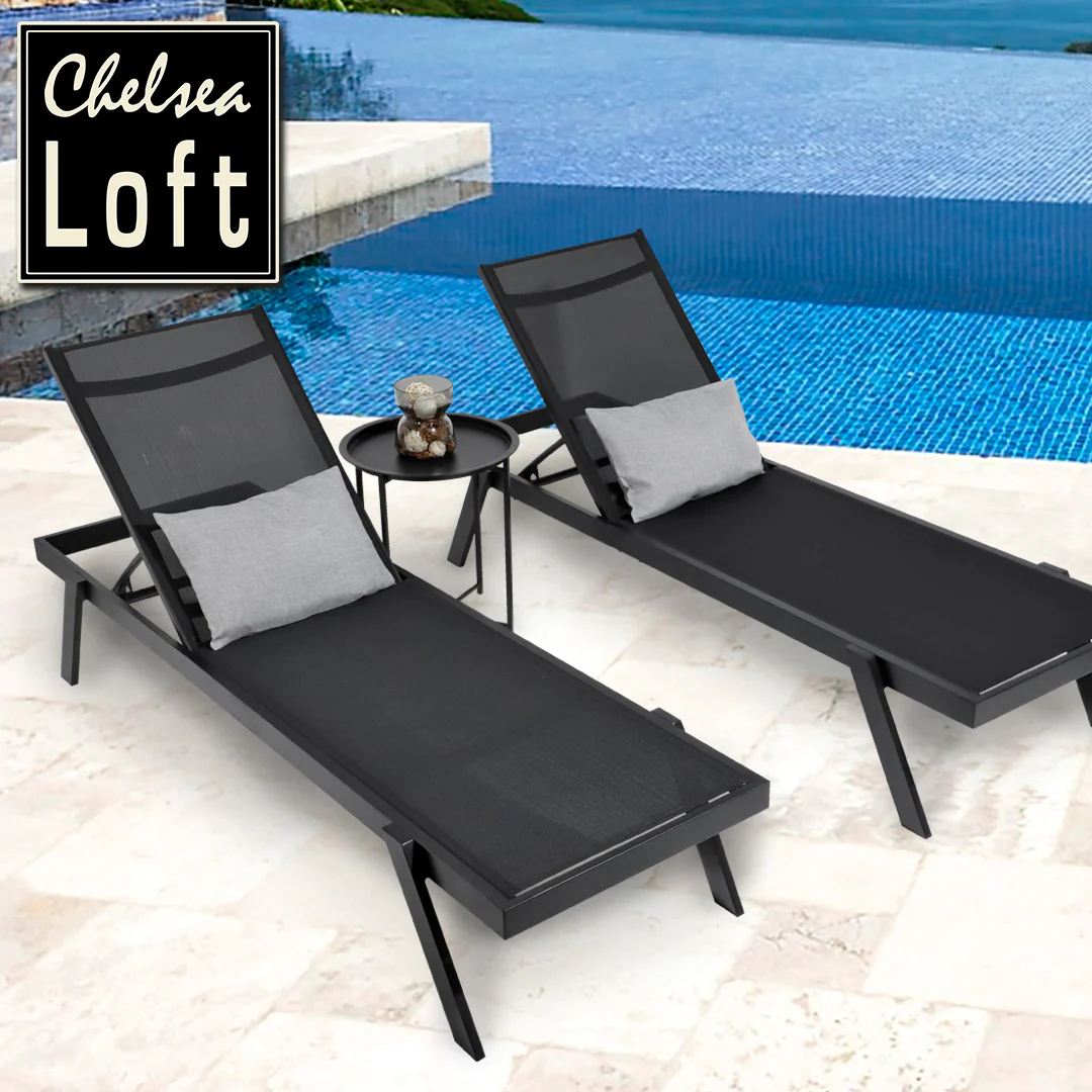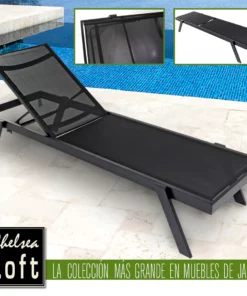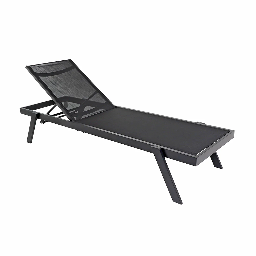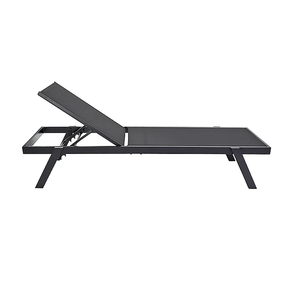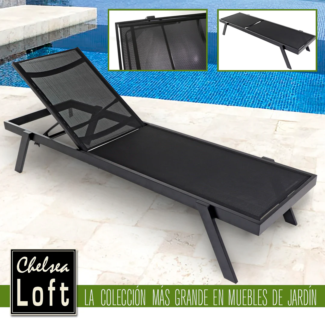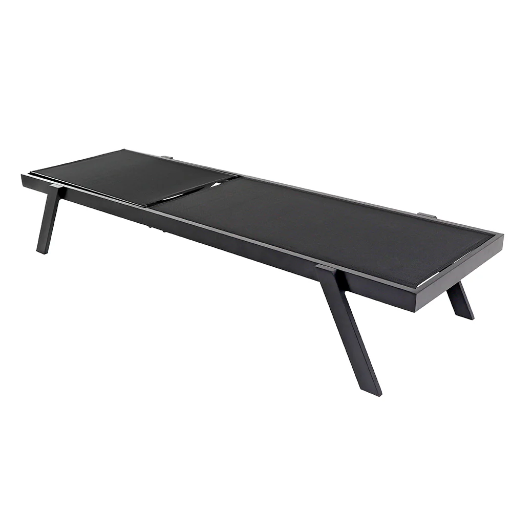 Camastro Tenerife Negro estibable en Textylene y Aluminio con acabado para exterior 65cm(L) x 198cm(P) x 35/97cm(A)