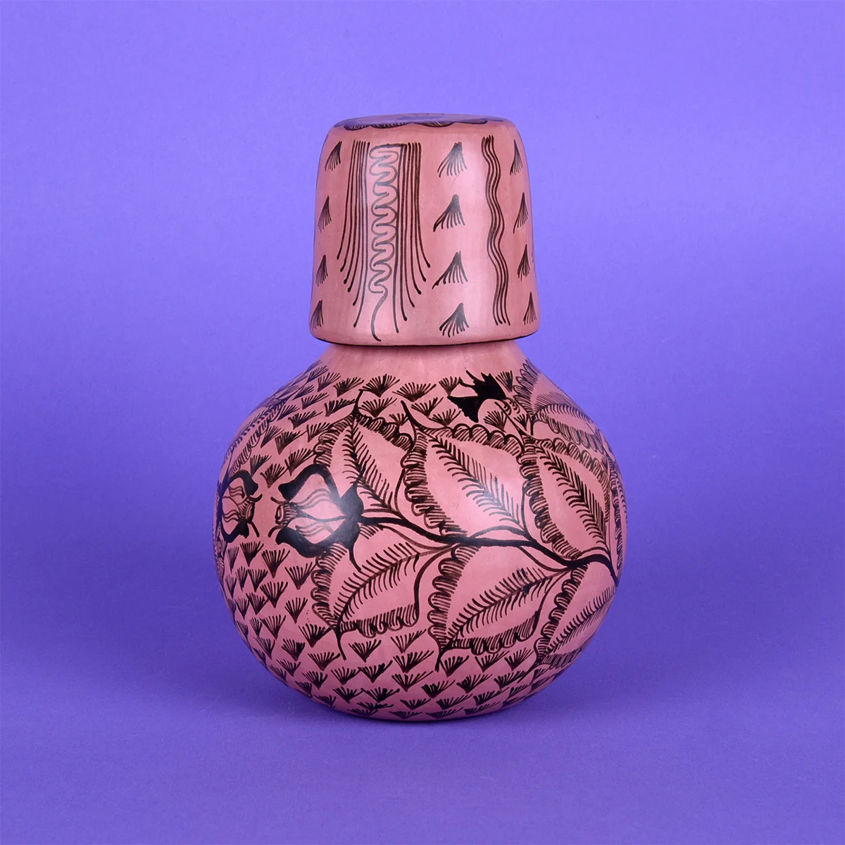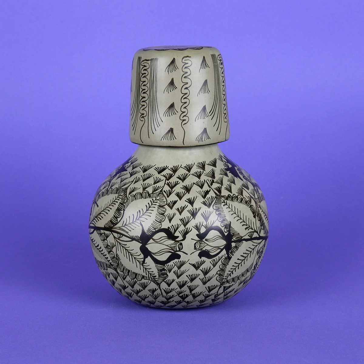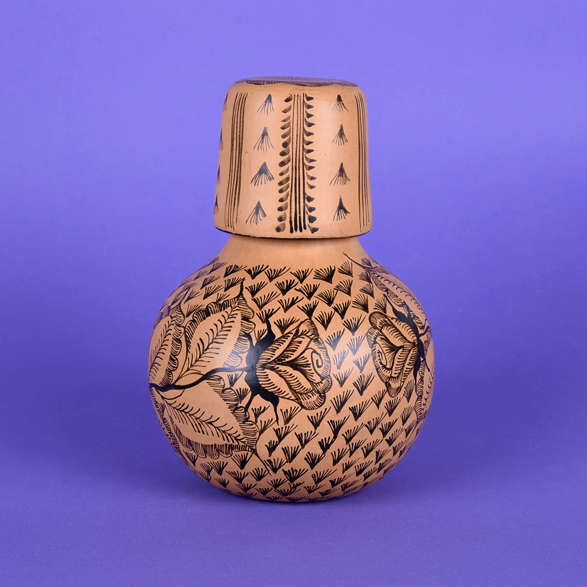 Barro modelado, policromado y bruñido. Hecha en un taller familiar.
