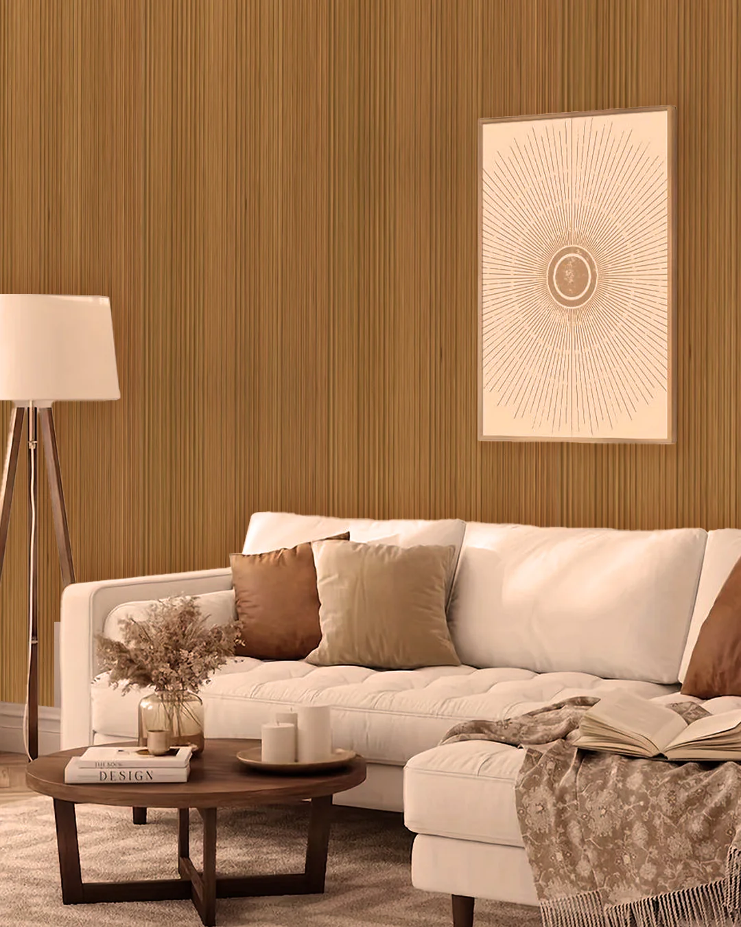 Lambrín interior zen color koan. El panel para interiores está compuesto 100% de un polímero termoplástico, también conocido como cristal plástico. Es la solución ideal para revestir espacios interiores con estilo y durabilidad. La caja contiene 10 paneles, cubre un área de 3m x 2.90m, para un total de 8.7 m².