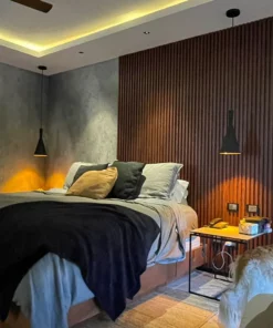 Lambrin WPC Interior Color Negro El panel WPC para interiores está compuesto por un 60% de resina de madera y un 40% de PVC, y está acabado con un revestimiento de impresión texturizado que le confiere el aspecto de la madera. La caja contiene 12 paneles + 2 esquineros por caja, cubre un área de 2.65mt x 2.40mt, para un total de 6.3 m2