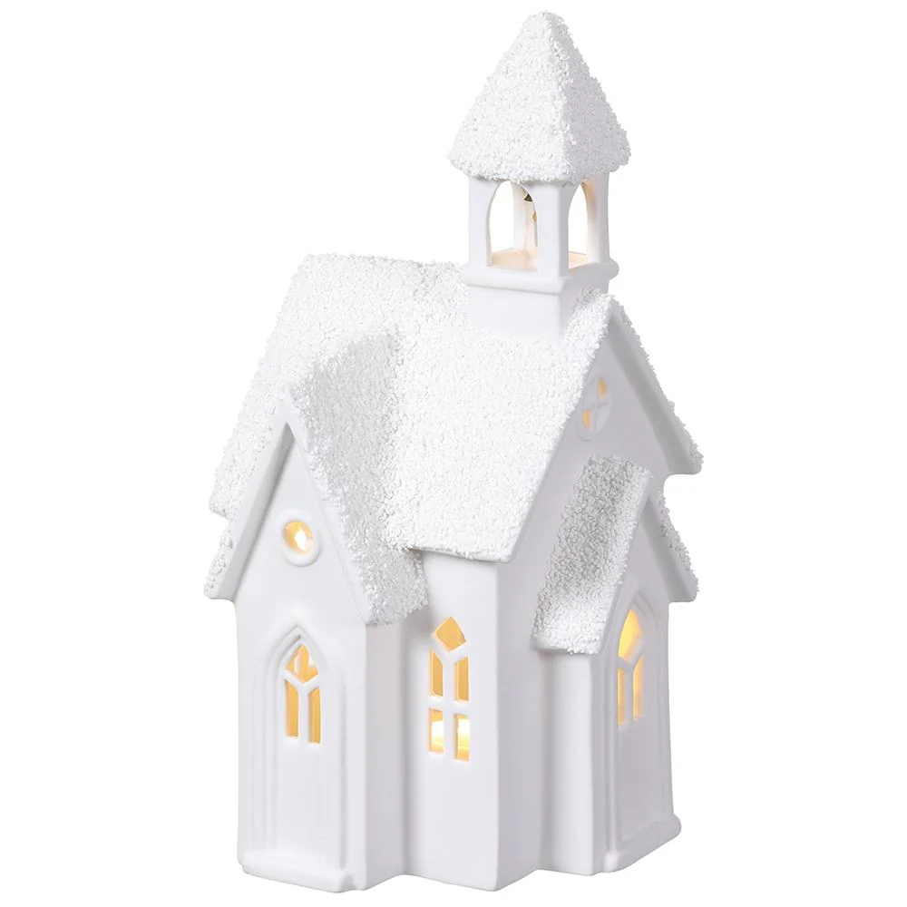 CASA NEVADA DE CERÁMICA BLANCA CON LUZ CALIDA