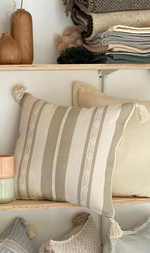 Cojín de Algodón 100% natural tejido en telar de cintura por mujeres artesanas de Oaxaca