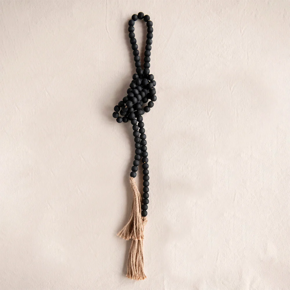 COLLAR DE CUENTAS NEGRAS CON BORLAS