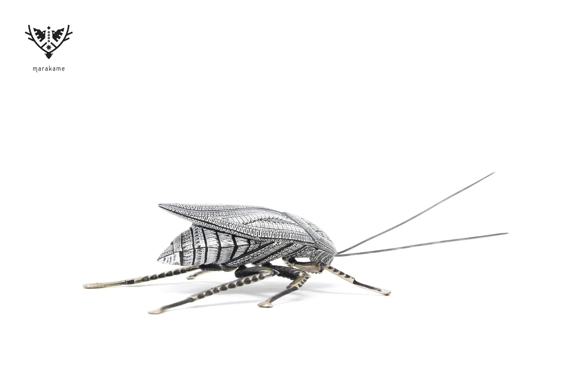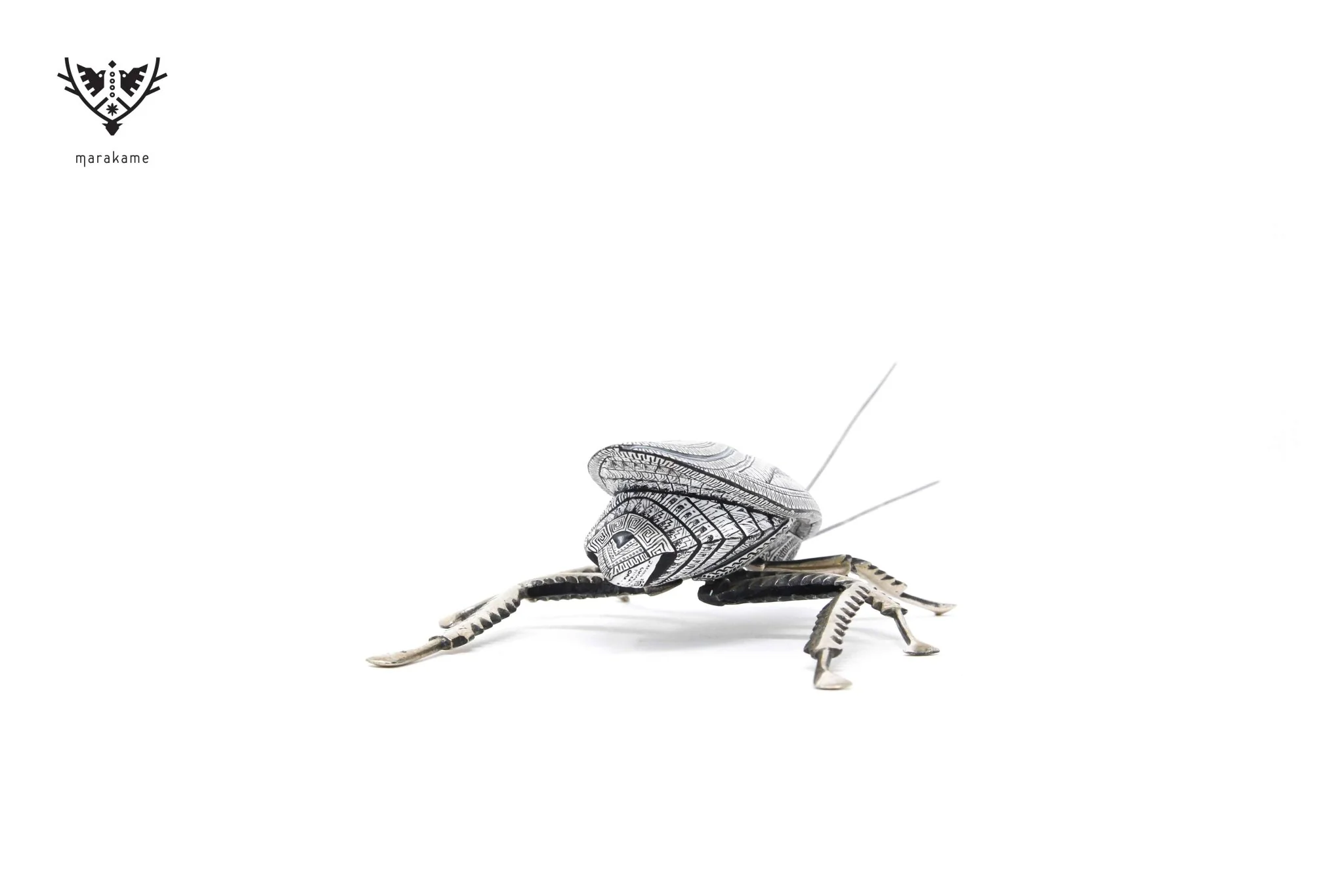 Este Alebrije oaxaqueño pertenece a la Exhibición “Plaga” en nuestra galería de arte Marakame. Aprecia los meticulosos detalles de la iconografía zapoteca y los precisos acabados únicos en estas piezas.