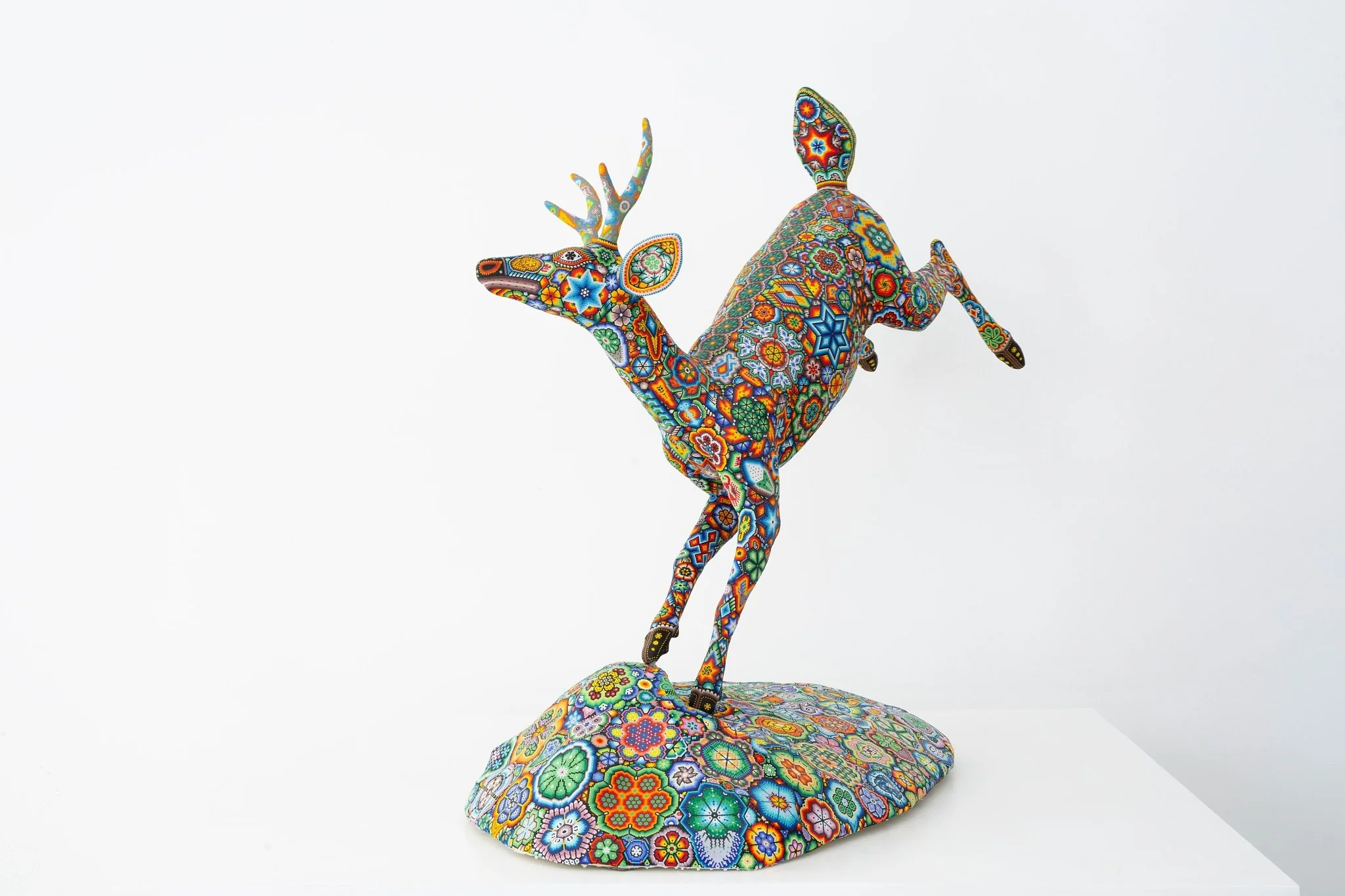 Escultura comisionada por el artista visual Fernando Motilla al taller de escultura de Arte Marakame, nace de la idea de un molde de taxidermia enriquecido con cuernos, orejas, ojos, para ser posteriormente forrado en vez de col la piel de un venado real, con un manto de cristales checoslovacos por meses de trabajo prensados en meditación activa por el artista visionario Luis de la Crúz de la comunidad wixárika de Tatéi-kie.