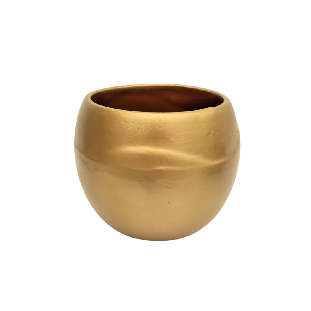 Maceta de barro en forma de esfera pintada de color dorado en 2 tamaños:
