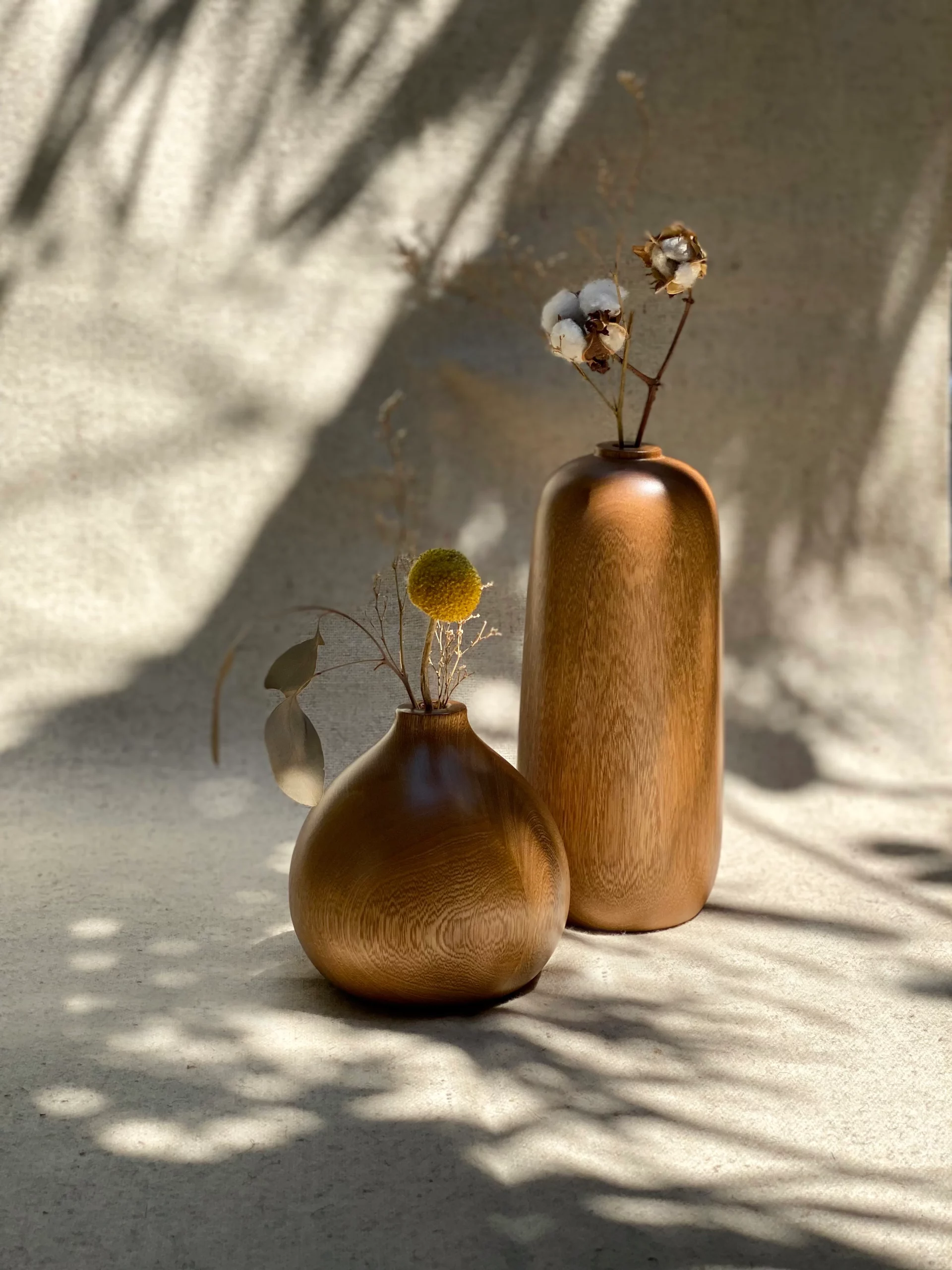 Florero Piñón en madera Rosa morada tallado de manera artesanal por artesanos de Jalisco