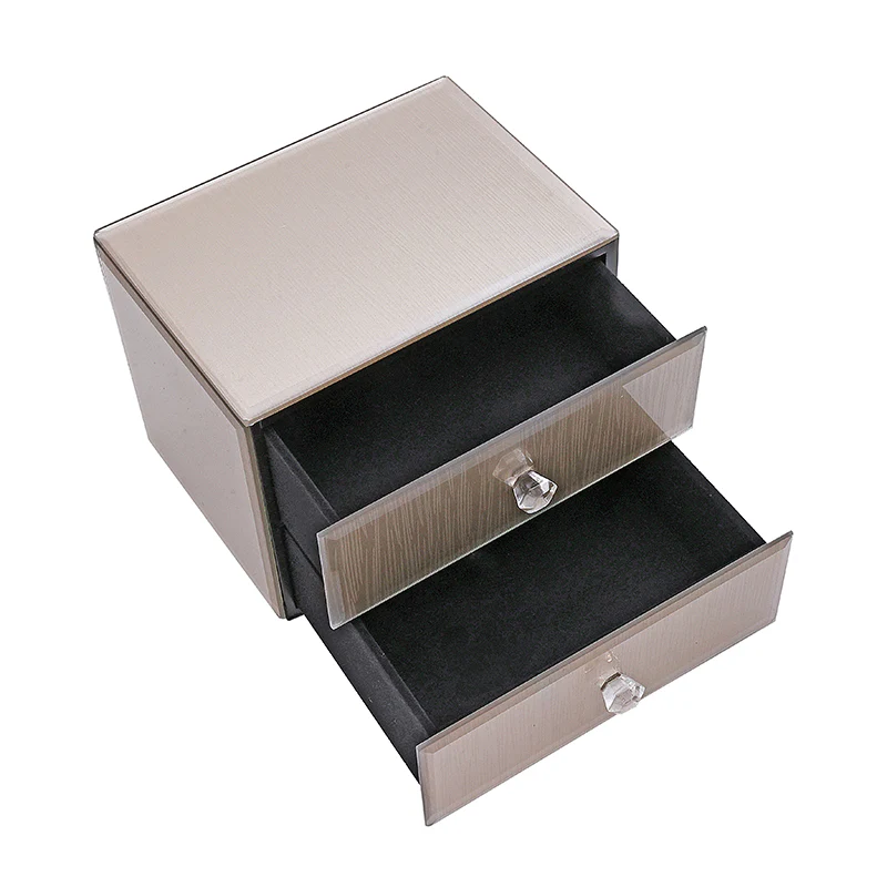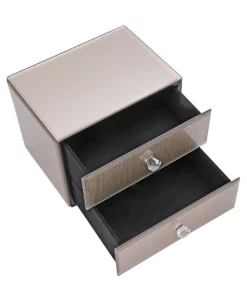 HM2456CH Joyero Doble Cajón Corteza Champaña 16cm(L)x 12cm(P)x 12cm(A)