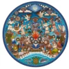 Esta tabla de hilo con cera, técnica de expresión plástica original del pueblo wixárika, muestra una escena muy ilustrativa de una ceremonia de ofrenda llevada a cabo en la Isla del Rey, en San Blas, Nayarit. En este lugar se encuentra la “roca blanca”, una formación rocosa a unos quinientos metros de la costa, que es considerada el hogar de Tatei Haramaara, Nuestra madre del Mar.