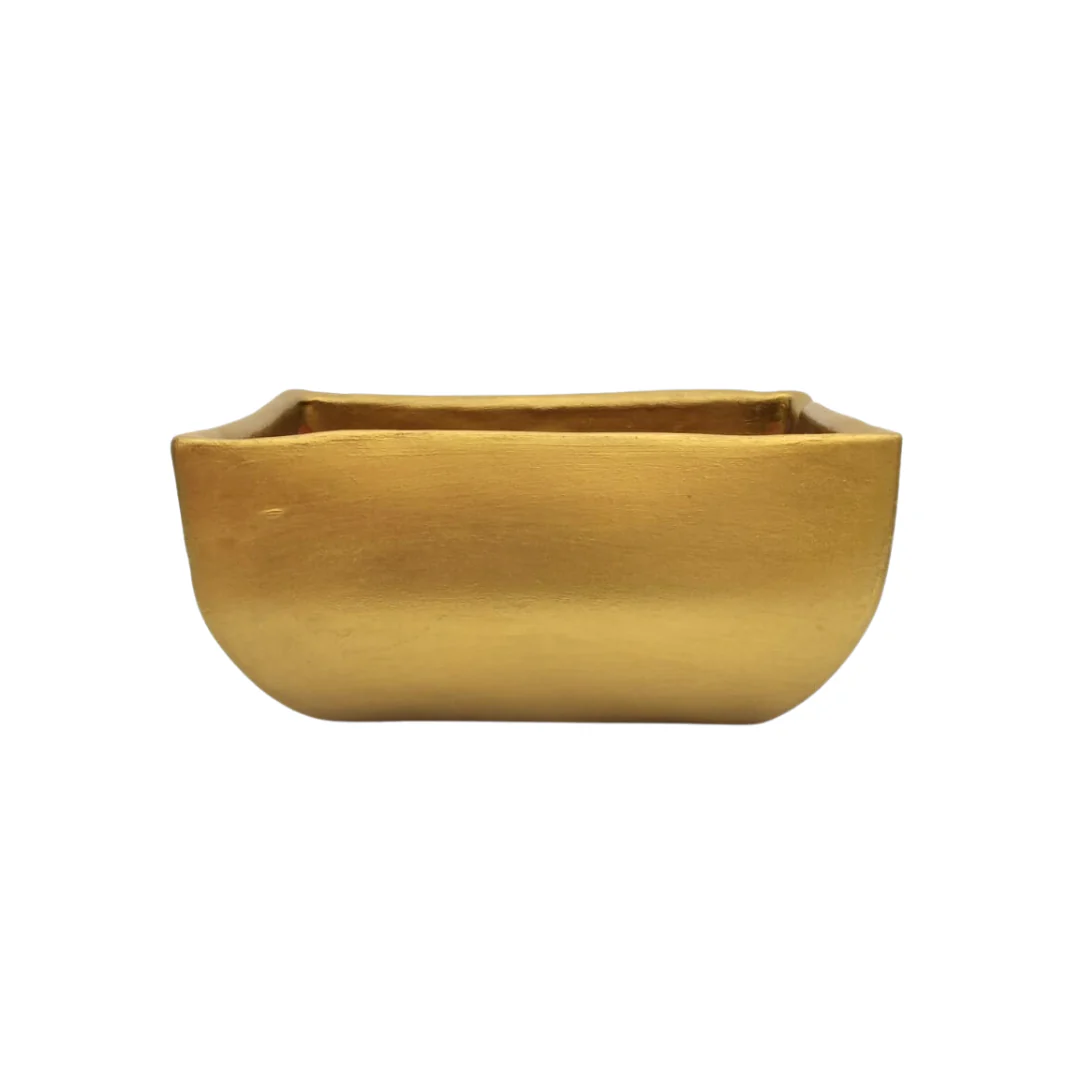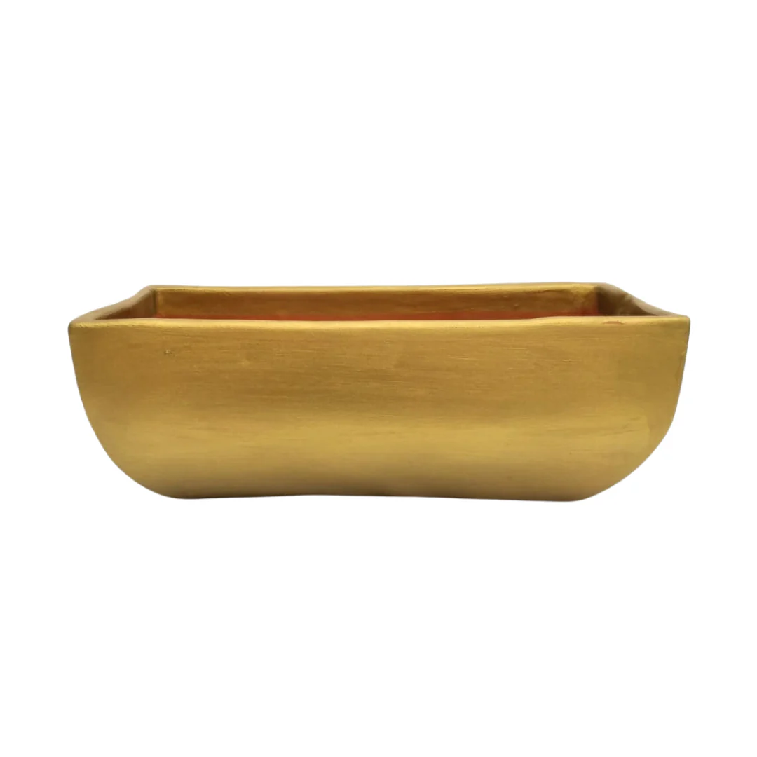 Jardinera de barro que mide 11 cm de alto y 16 cm de ancho en 3 presentaciones de largo.