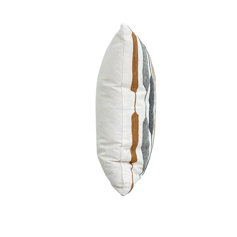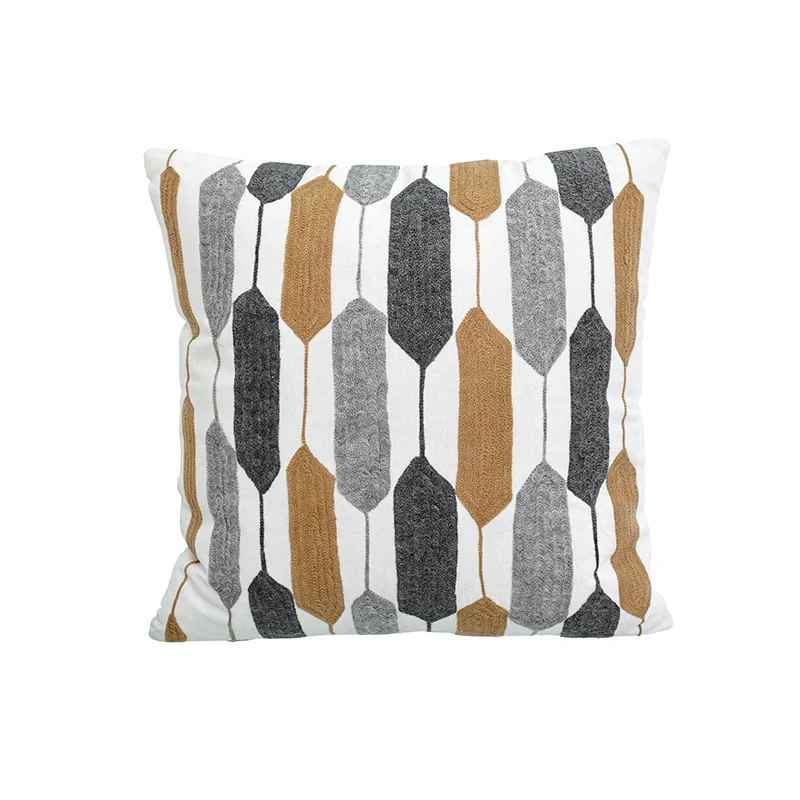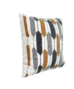 KC249550 Cojín Niza Blanco Bordado Gris y Vaqueta 50×50 cm.