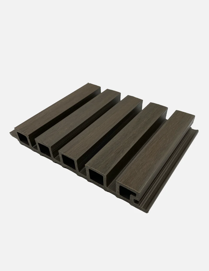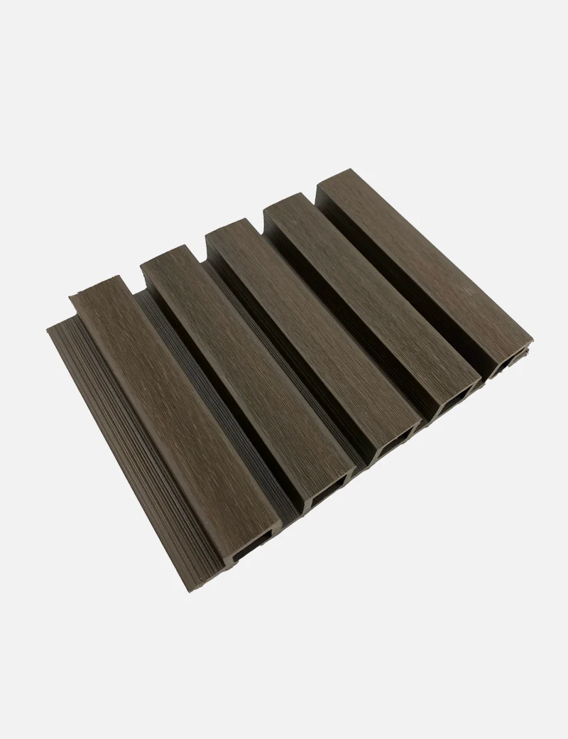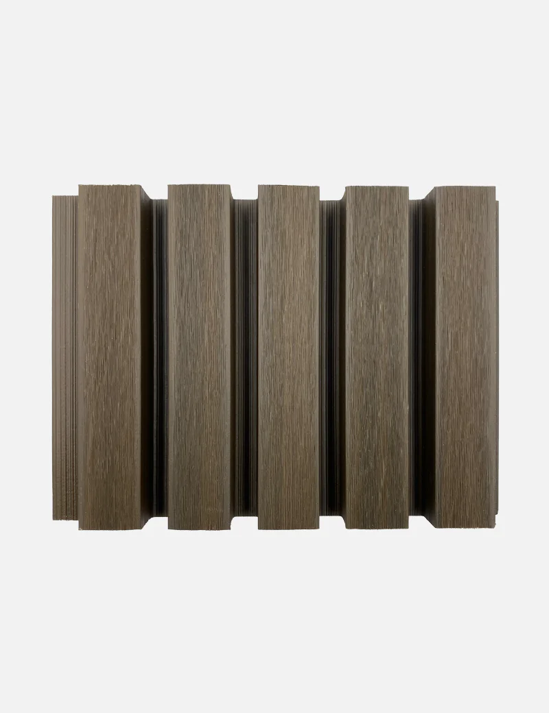 Lambrin Exterior Color Nogal SIN-11 El lambrín CO-ESTRUXIÓN WPC para exterior está compuesto por 60% de resina de madera y 40% HDPE Polímero de alta densidad. Resistente a cambios extremos ambientales, ideal para lugares con altas temperaturas y exposición al sol prolongada así como lugares fríos, con lluvia y nieve. Lo vendemos por pieza. Cada pieza mide: 2.9 m de alto x 20.1 cm de ancho x 26mm de grosor.
