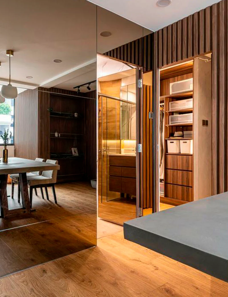 La lámina BCC tipo espejo es de uso exclusivo para espacios interiores, es a prueba de humedad y su fácil instalación y diseño ultra realista hacen que se convierta en una gran opción de decoración para los espacios.