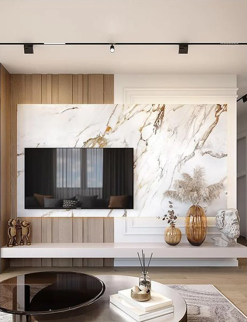 La hoja de mármol de panel de pared de PVC es un tipo de revestimiento para paredes que imita el aspecto del mármol natural. Se trata de un material alternativo al mármol verdadero, ya que está fabricado con PVC, un material sintético y más económico que el mármol.