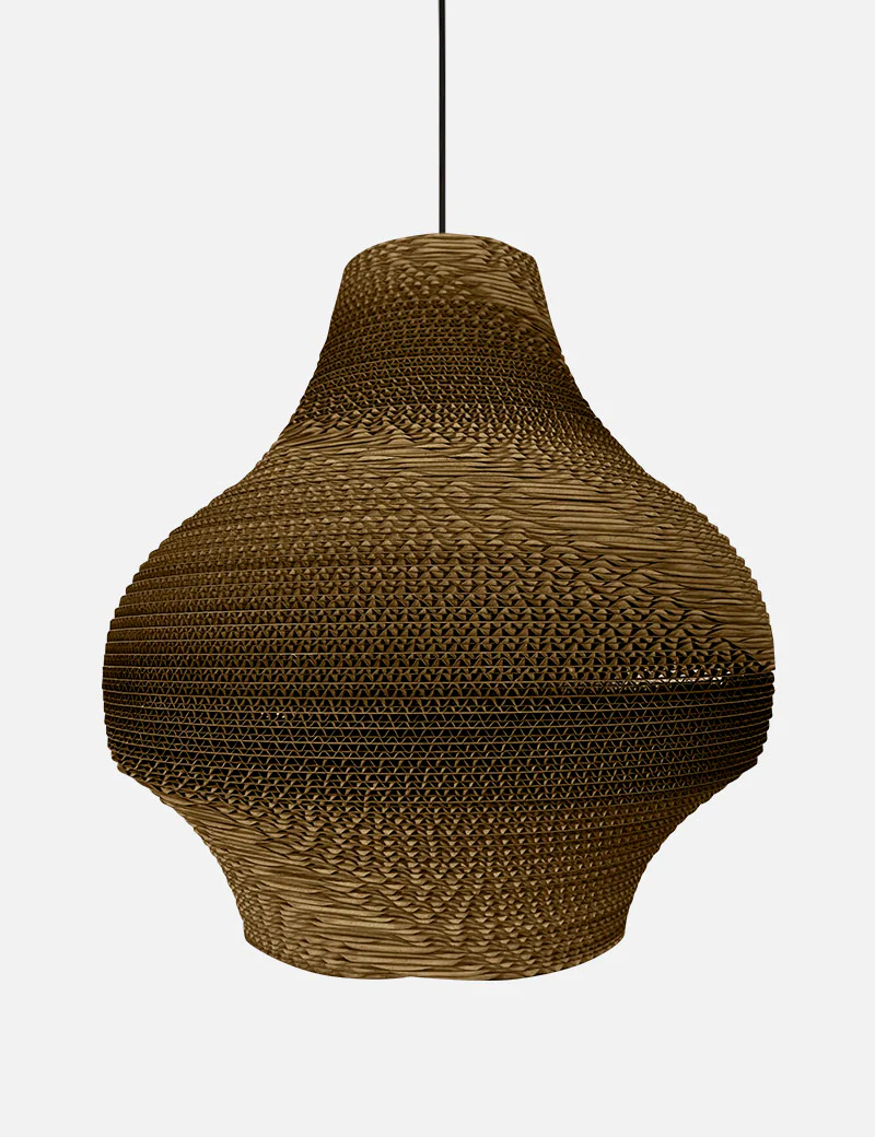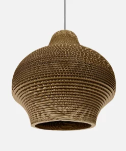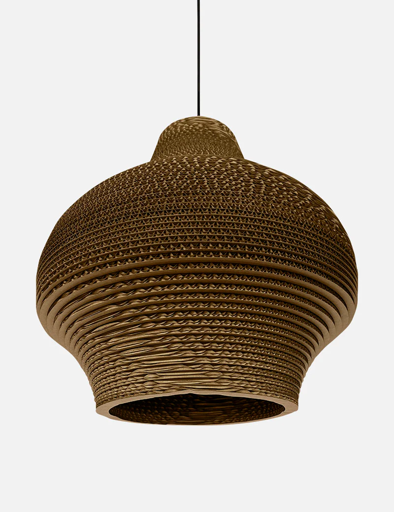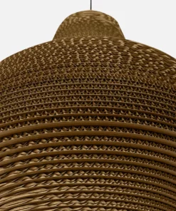 Lámpara colgante de corrugado, elegante y sostenible. Con dimensiones de 40cm X 42cm, está elaborada completamente de materiales 100% biodegradables, fusionando diseño moderno con conciencia ambiental. Ilumina tus espacios con estilo y responsabilidad ecológica.