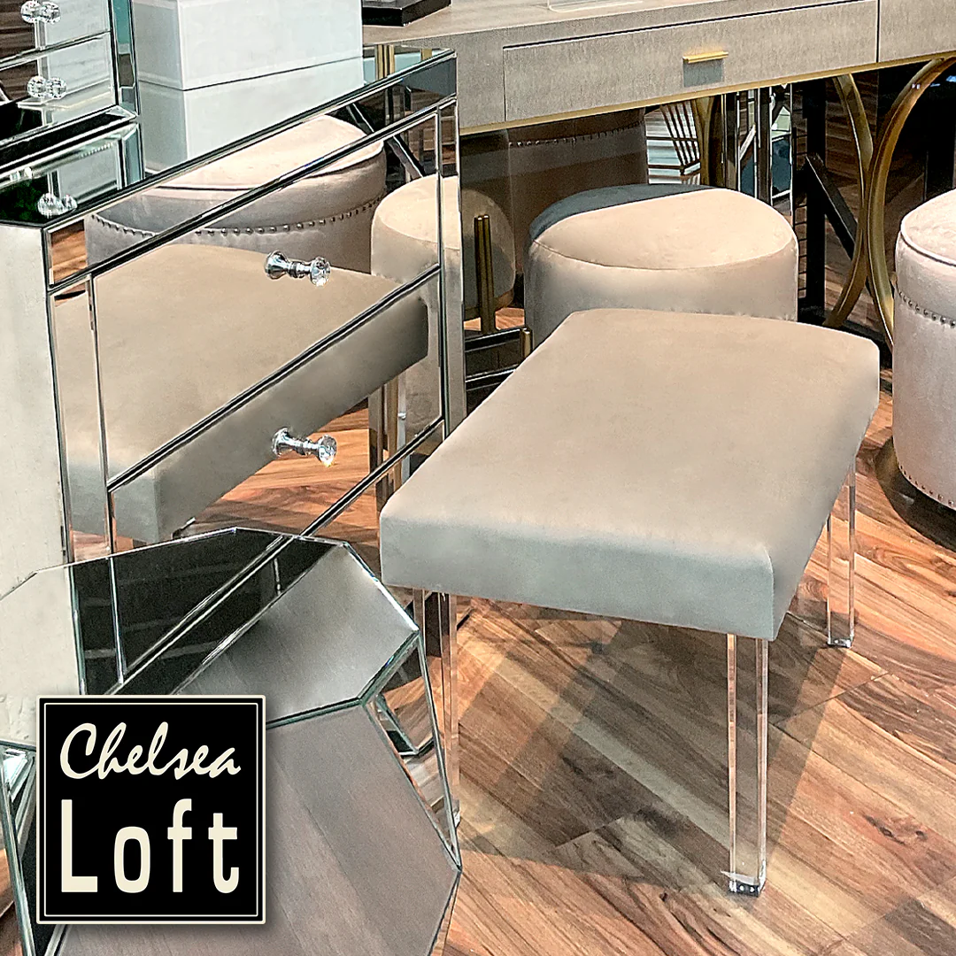 MGA6593-2 Taburete Khalifa Beige Con Acrilico 61(L)X41(P)X44(A) Cm.