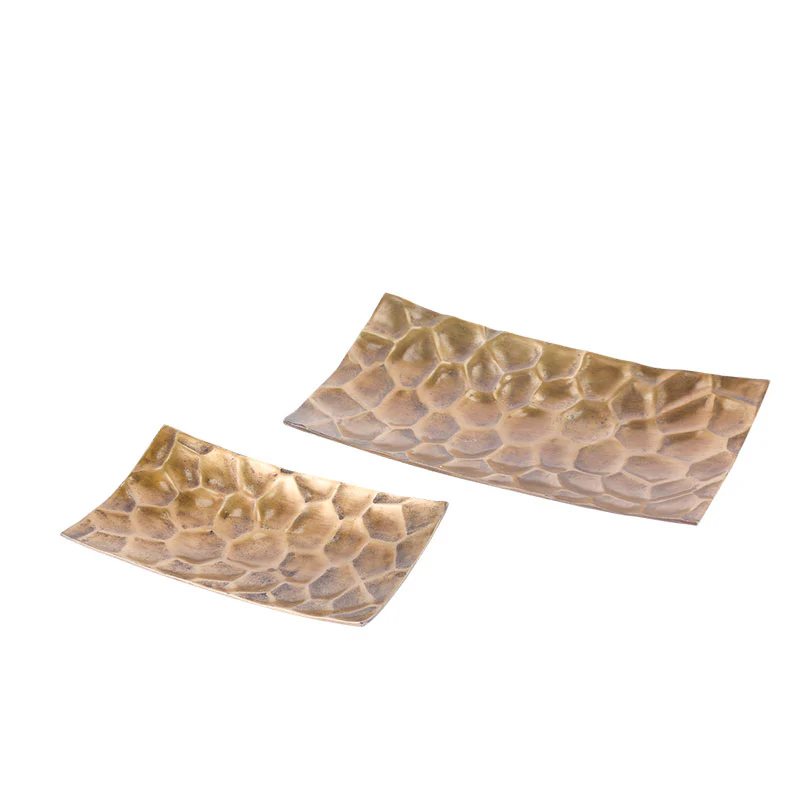 MIN2140 Platón Rectangular Hexágonos Metal Bronce 40(L)x20(P)x6(A) cm.