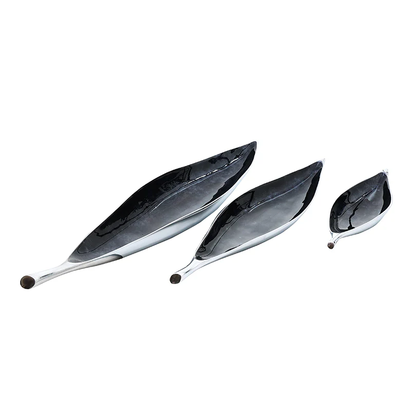 MIN4273 Batea Hoja Metal Plata y Medianoche Mediano 60 cm.