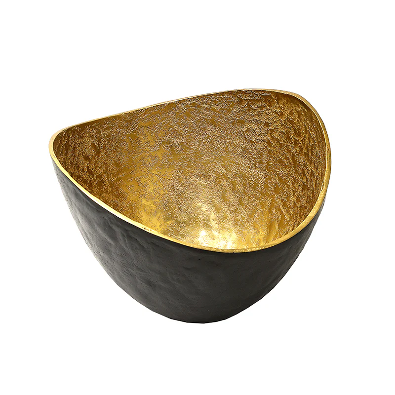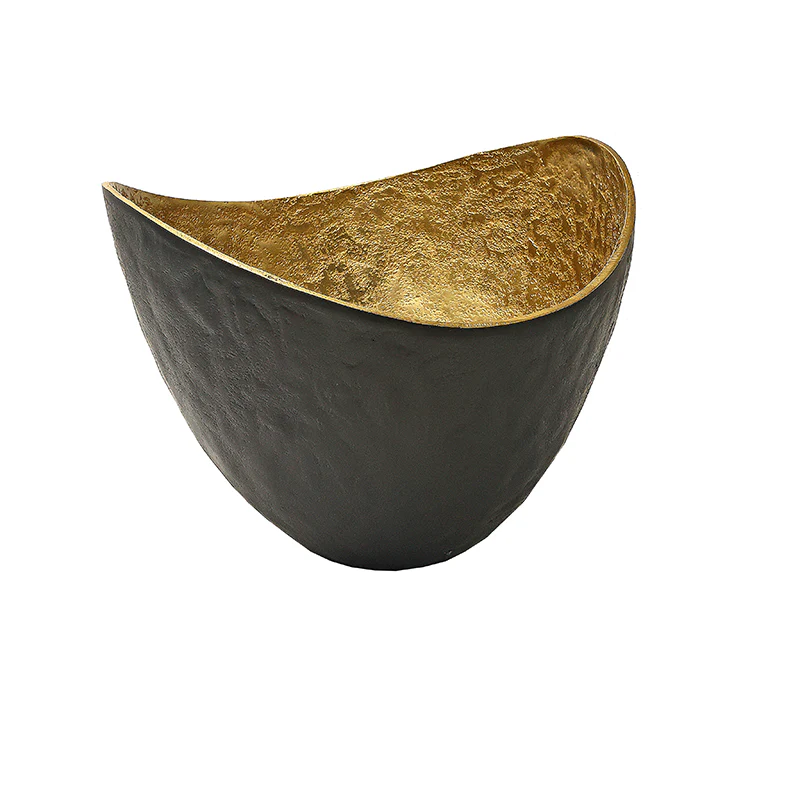 MINO2270 Centro Tazón Metal Negro y Oro Chico 24 cm.