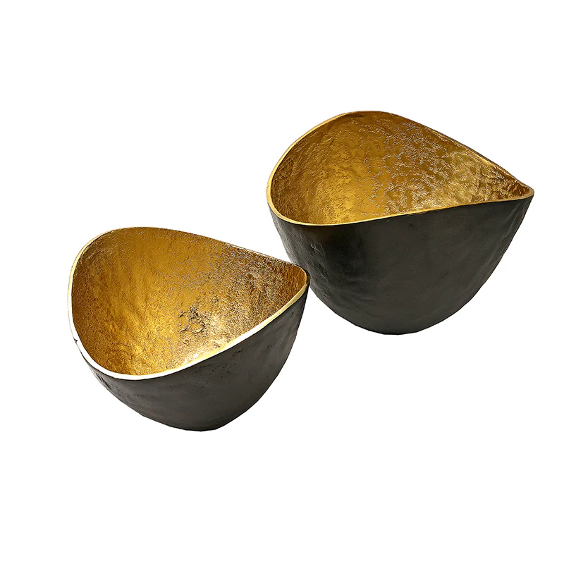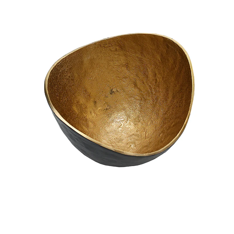MINO4550 Centro Tazón Metal Negro y Oro Grande 30 cm.