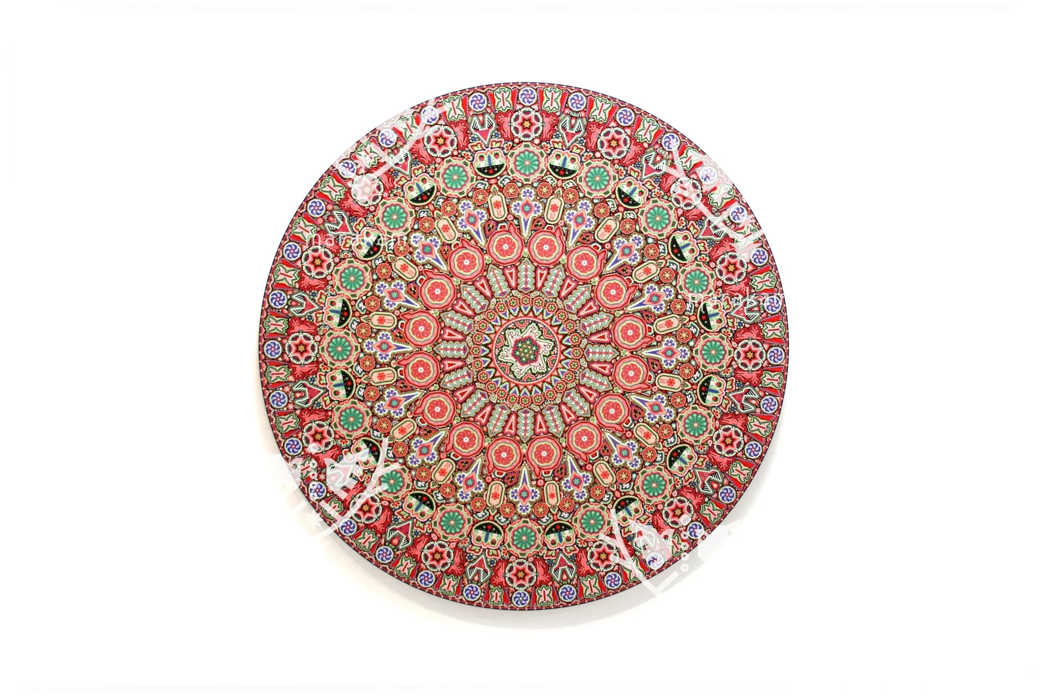 ◇ Técnica: Chaquira de cristal calibrado 11/0 prensada con cera de campeche y pegamento epóxico sobre círculo de madera.