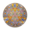 ◇ Técnica: Chaquira de cristal calibrado 11/0 prensada con pegamento epóxico sobre círculo de madera.