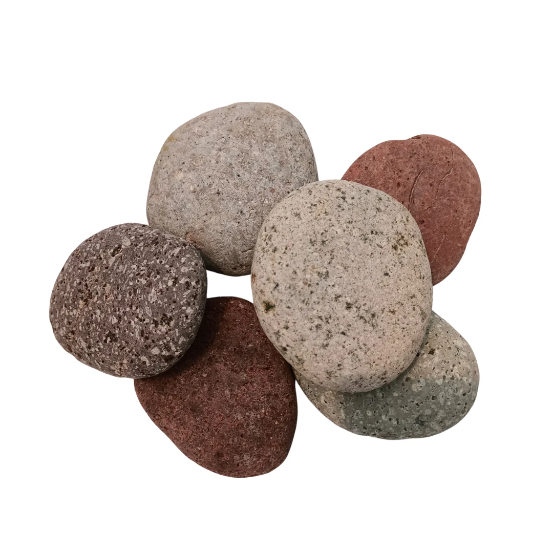 Piedra de mar de colores y forma de luneta mediana, ideal para decorar jardines interiores y exteriores.