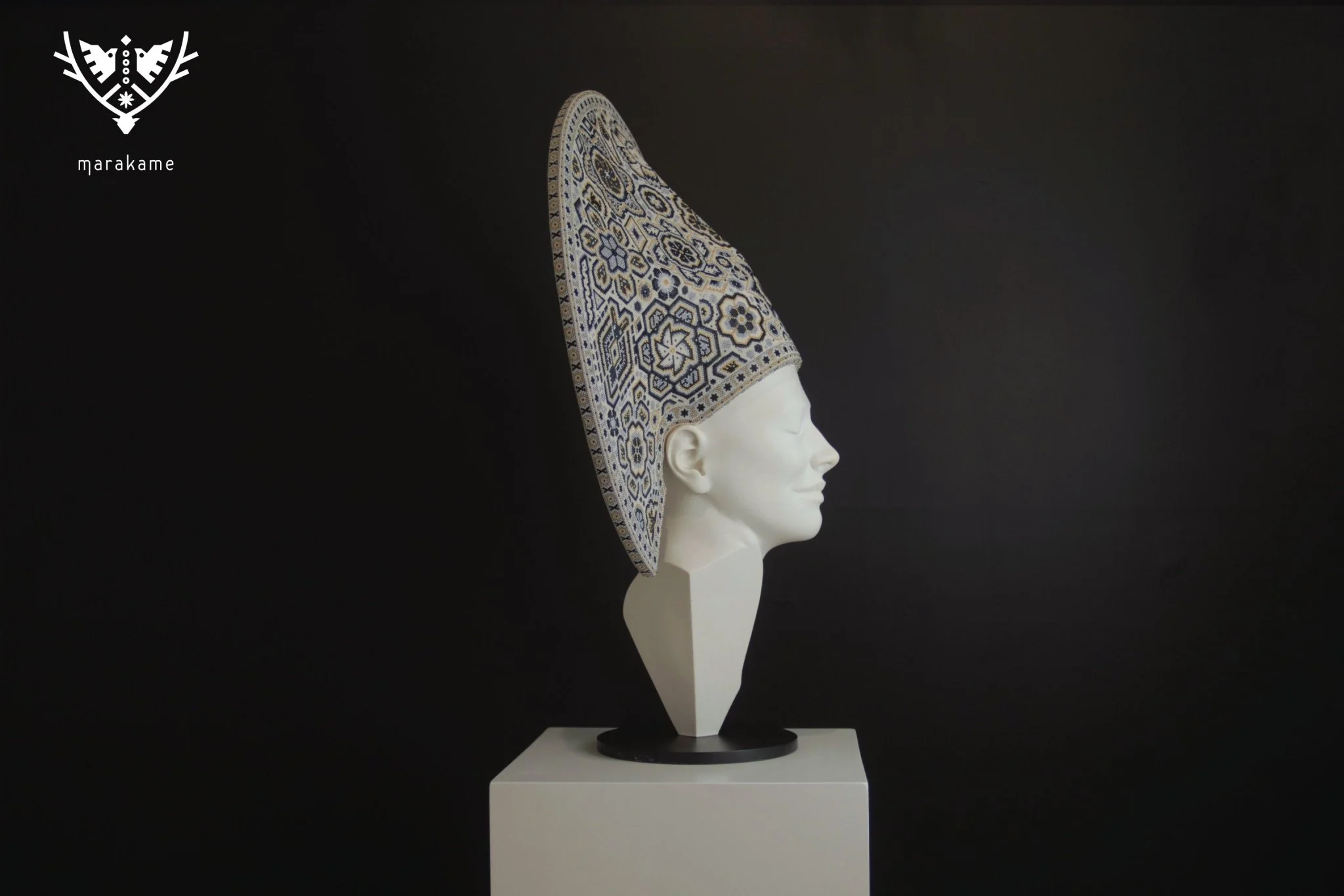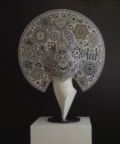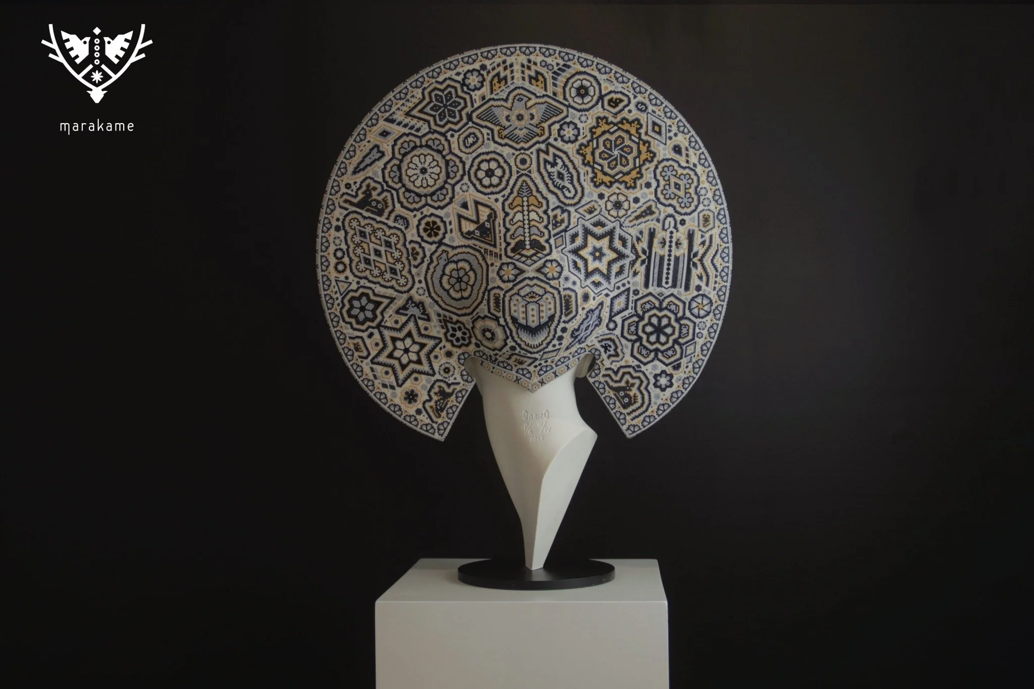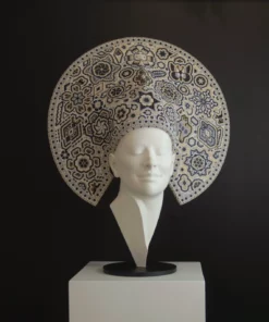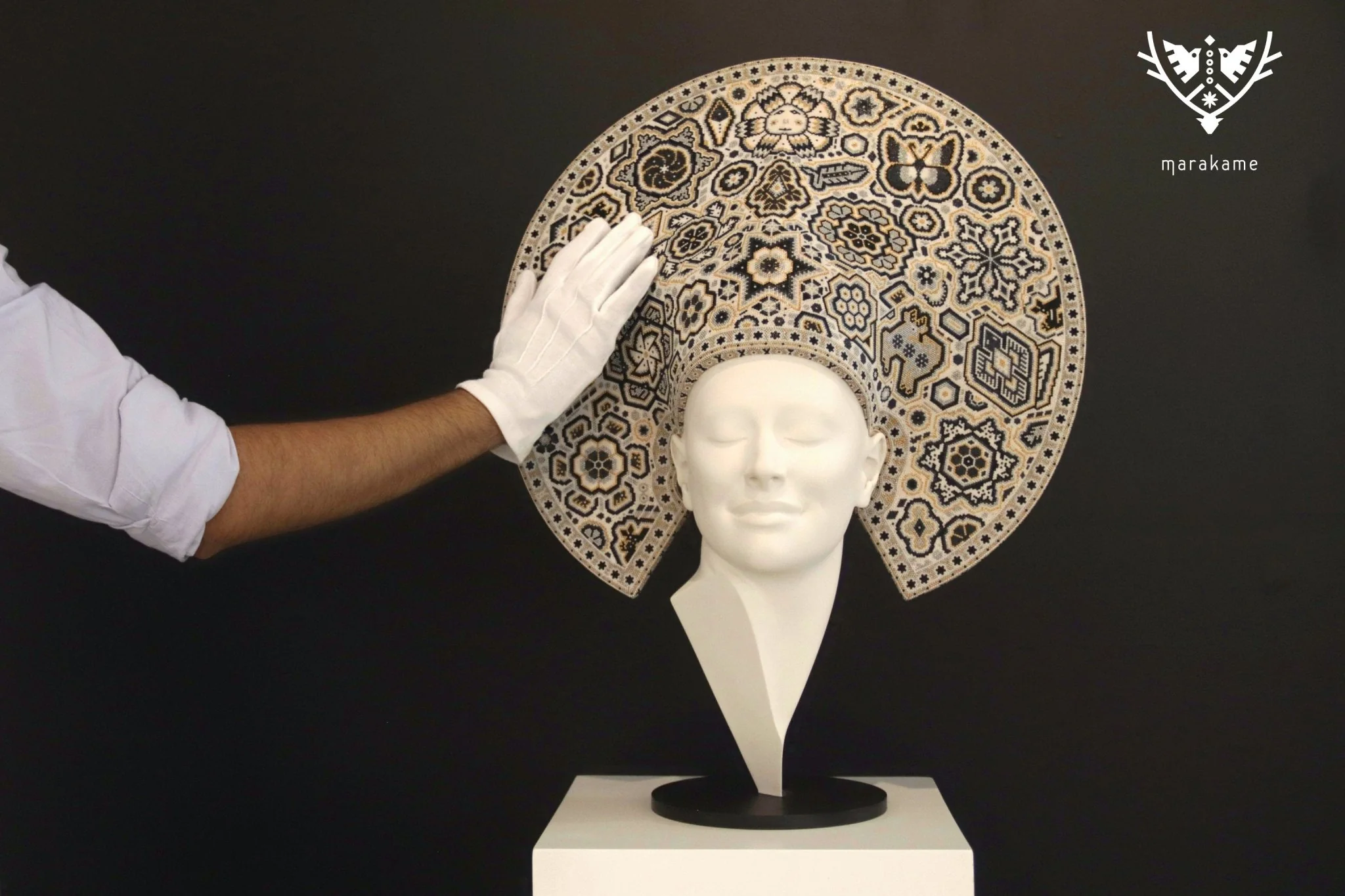 “Xapawiyemari” es una colaboración única entre el escultor César Orrico y el estudio de Arte Marakame, la cual fue comisionada al artista wixárika Luis de la Cruz. La obra fusiona la escultura contemporánea con la tradición ancestral del arte huichol, utilizando chaquira de cristal para crear patrones sagrados y geométricos que envuelven la cabeza de Gea. Esta pieza simboliza la conexión entre la humanidad y la tierra, representando a Gea, madre de la naturaleza, con un halo ceremonial de sabiduría y espiritualidad.