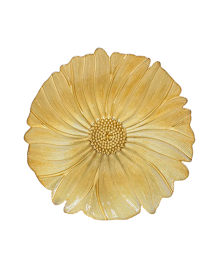 R733011-1 BAJO PLATO VIDRIO FLOR 33 CM ORO