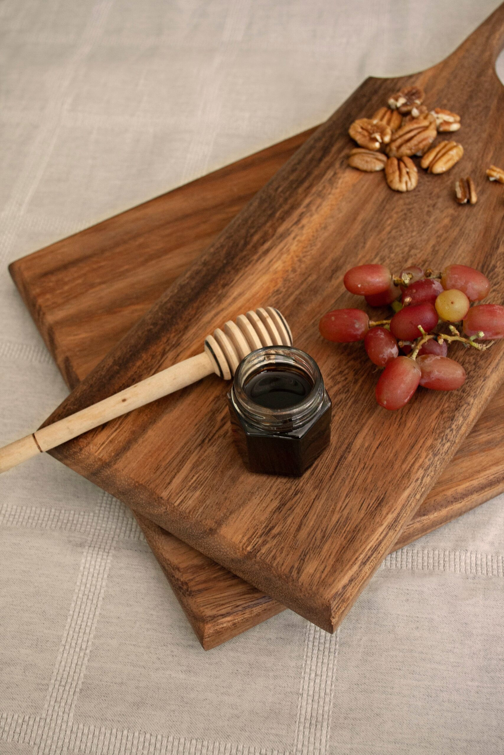 Tabla de quesos ideal para acompañar meridaje y charcutería; elaborada en madera de parota con mango tallado a mano por artesanos de Jalisco. Curada con cera de abeja grado alimenticio*