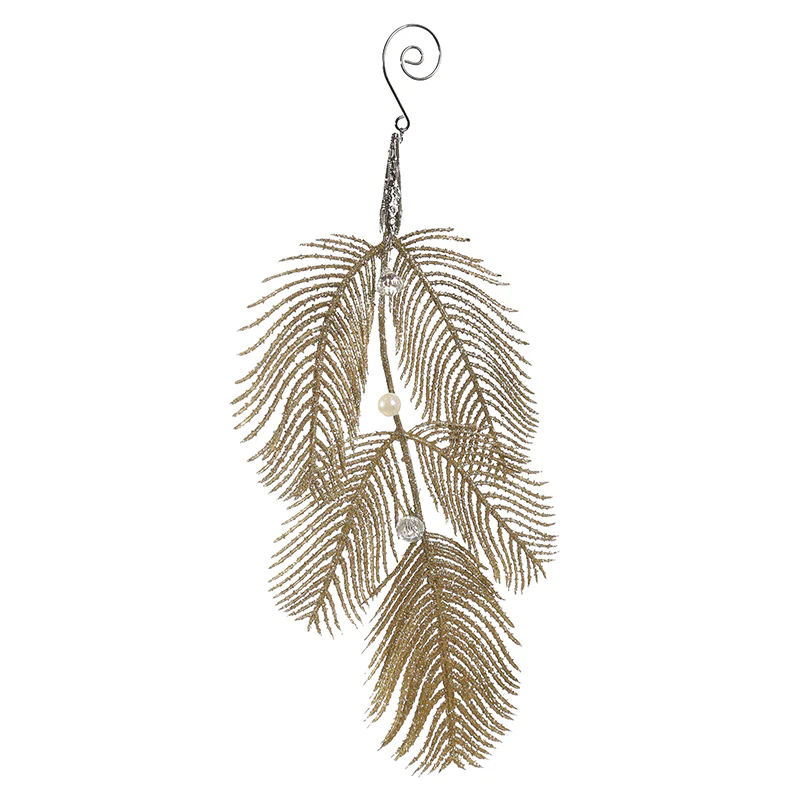 RH1625C Ornamento Plumas Y Perlas Champaña 31 Cm.