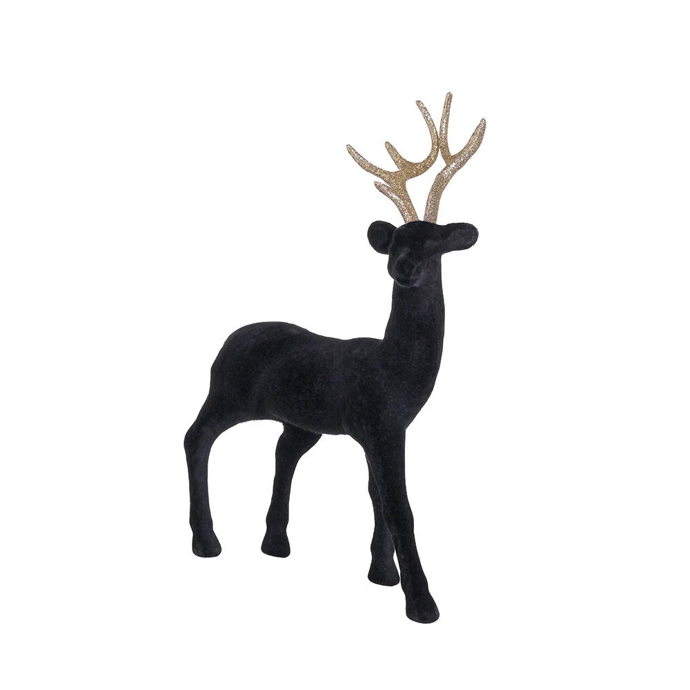 RJL368NV Venado Terciopelo Negro Volteando 32 Cm.