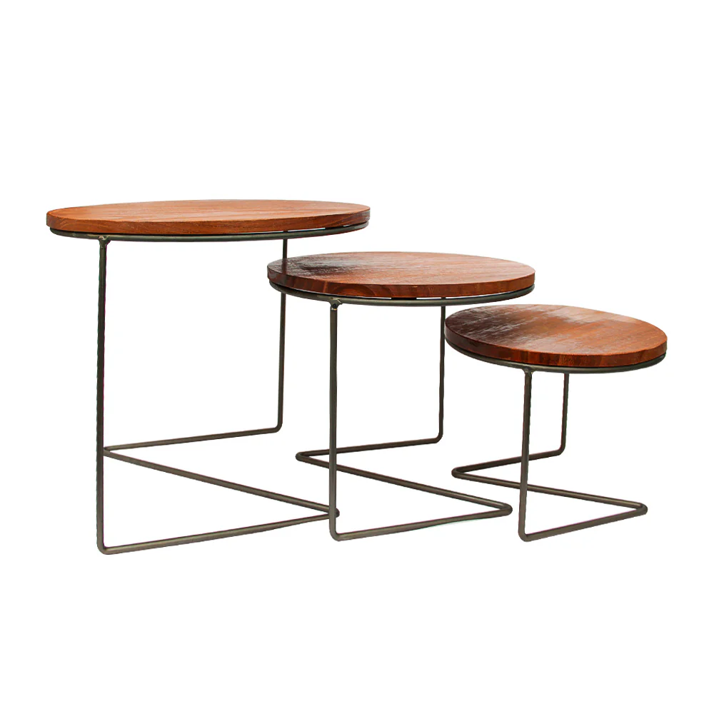SET DE 3 ELEVADORES DE MADERA CON METAL