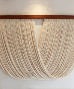 - Materiales: Base de madera con decoración de hilos de algodón.