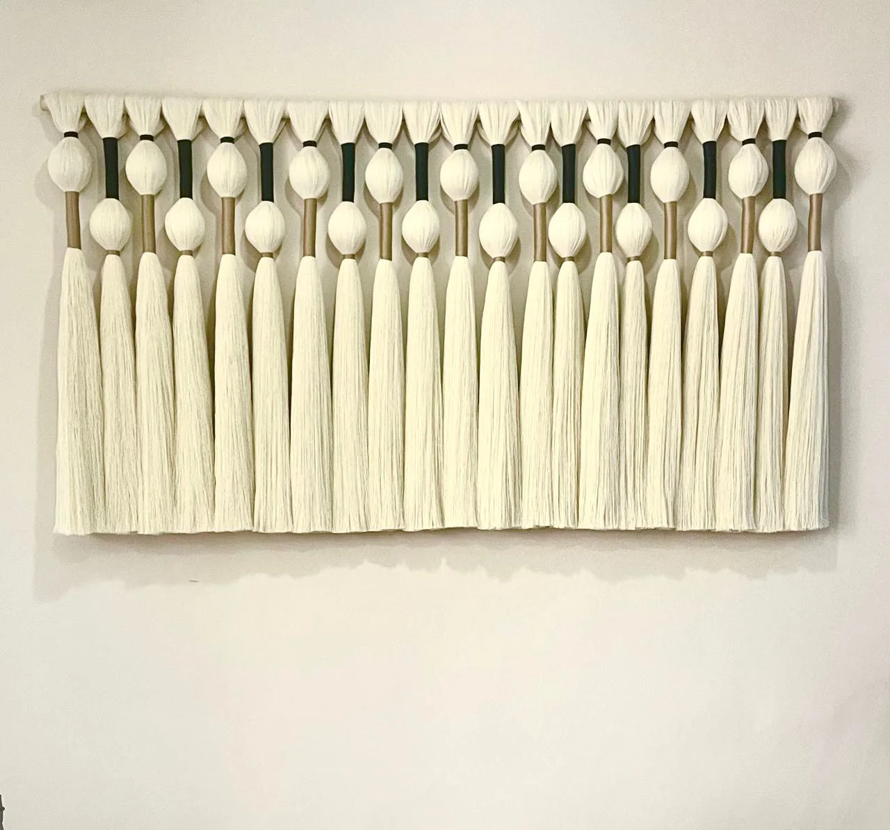 Decora con nuestro tapiz Borlas hecho de Hilos de Hilaza engomada. Fabricado íntegramente a mano, por nuestros artesanos en Yucatán, México.