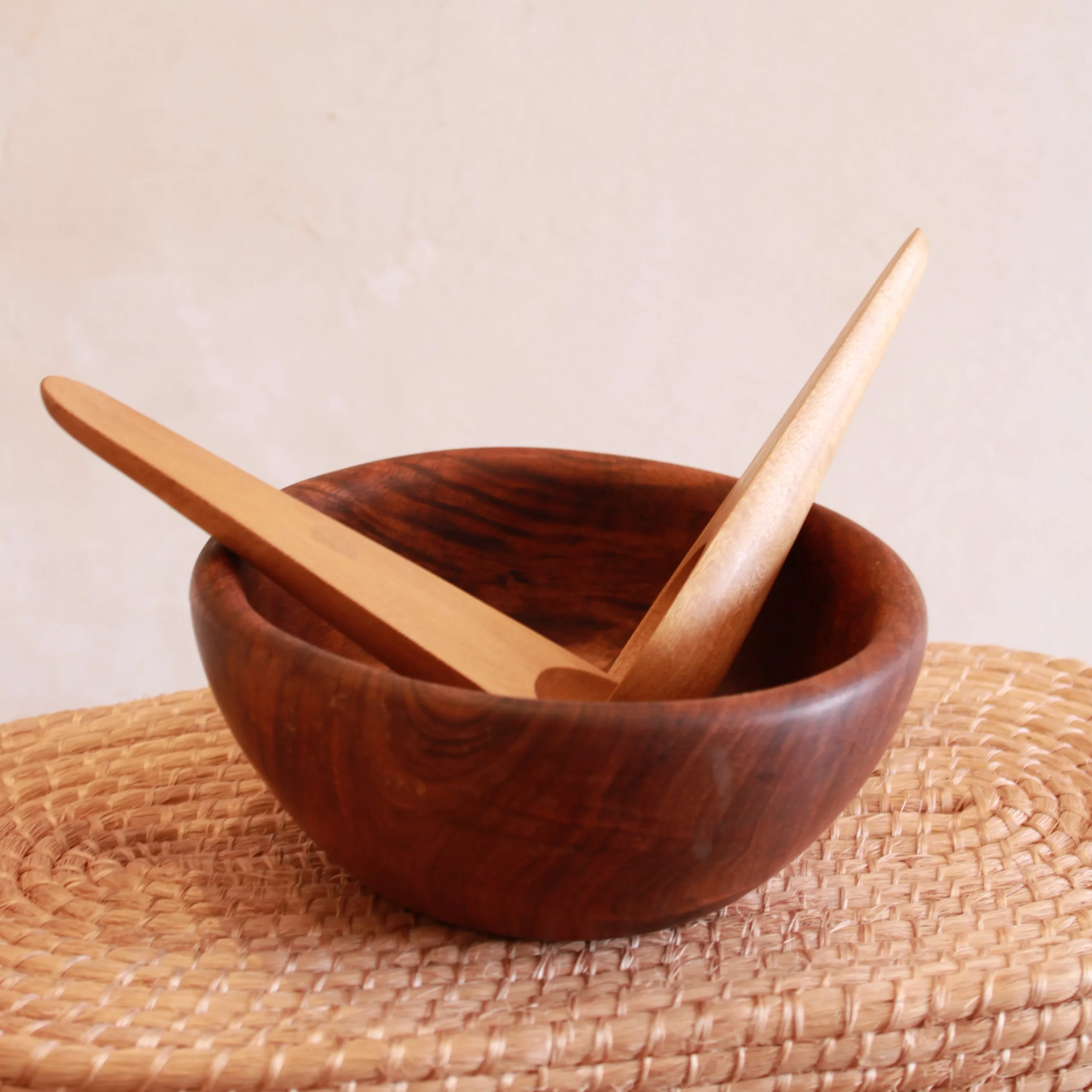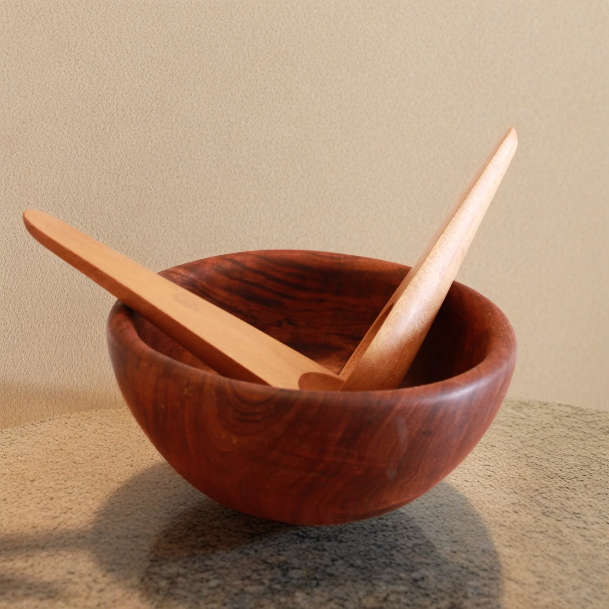 Tazón con cubiertos de madera de Tzalam, perfecta para tus reuniones, de manera muy original. Diseño moderno y elegante ideal para cualquier regalo, decoración y uso.