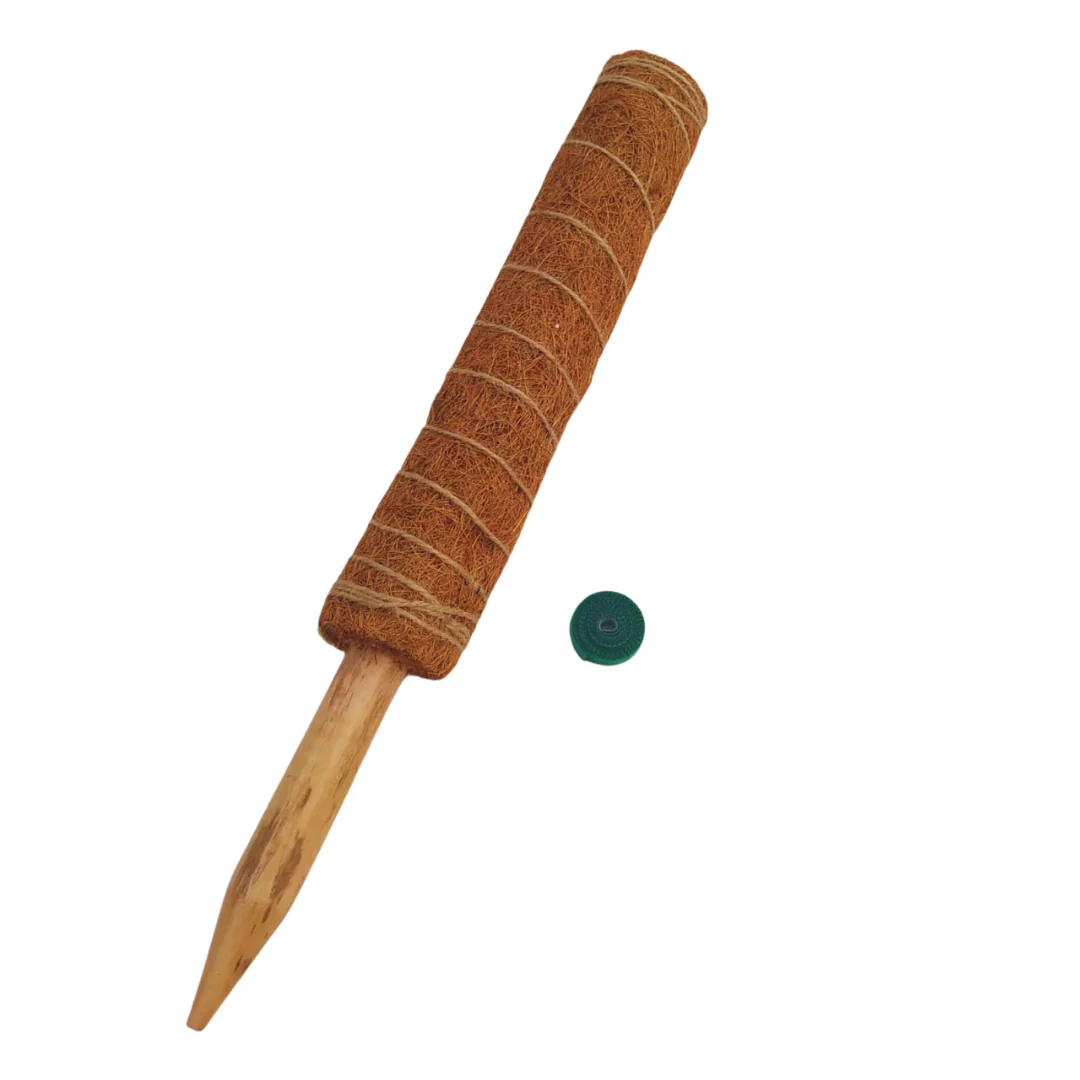 Tutor de fibra de coco de 30 centímetros (Incluyendo la estaca) que funciona como tutor para plantas de guía, es posible ensamblar varias piezas para obtener mayor altura, incluye cintillos para sujetar la planta en el totem.