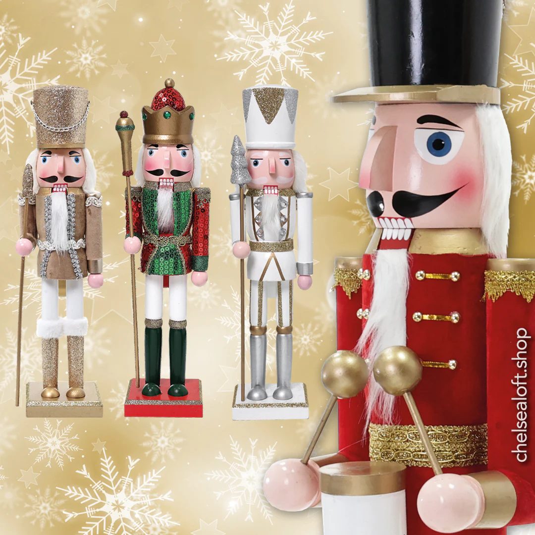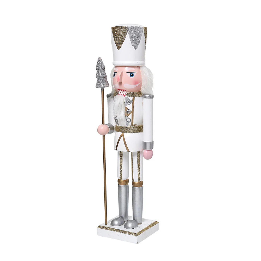 ZHT910B Cascanueces Guardia Blanco Frost, Plata y Oro 38 cm.